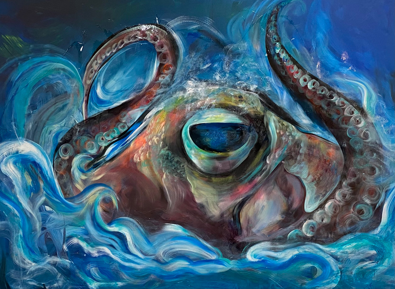 Exhibition by our Artists, Teachers, and other Creatives, including ANON who used AI interpretations of her ideas as reference, and created her own visuals manually on canvas.